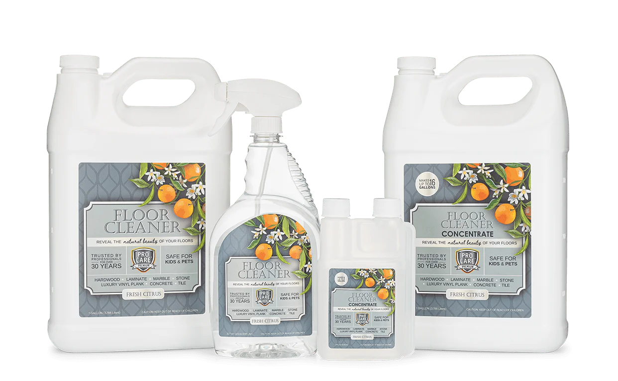 Cleaning your floors has never been easier! ProCare®️ Citrus products clean and enhance the natural beauty of your floors. Easy to apply with no rinse needed, our products are great for real wood floors, laminate, tile and marble surfaces.